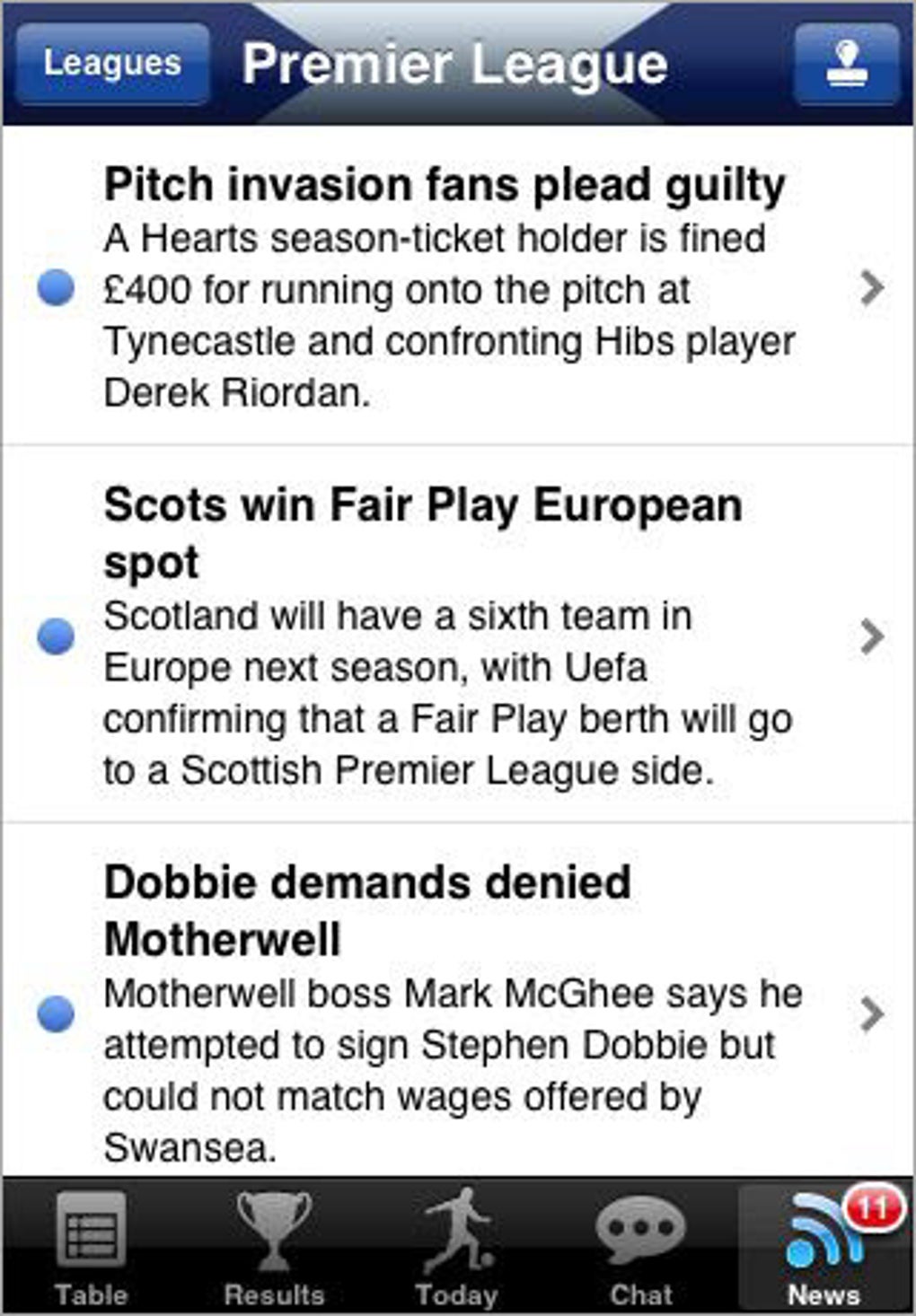 O menu aparece na parte debaixo da tela com as opções de navegação. Confira a tabela completa de classificação dos times, visualize os resultados e as partidas do dia. O iFooty World ainda inclui uma espécie de sala de chat para discussão sobre futebol e feeds RSS.